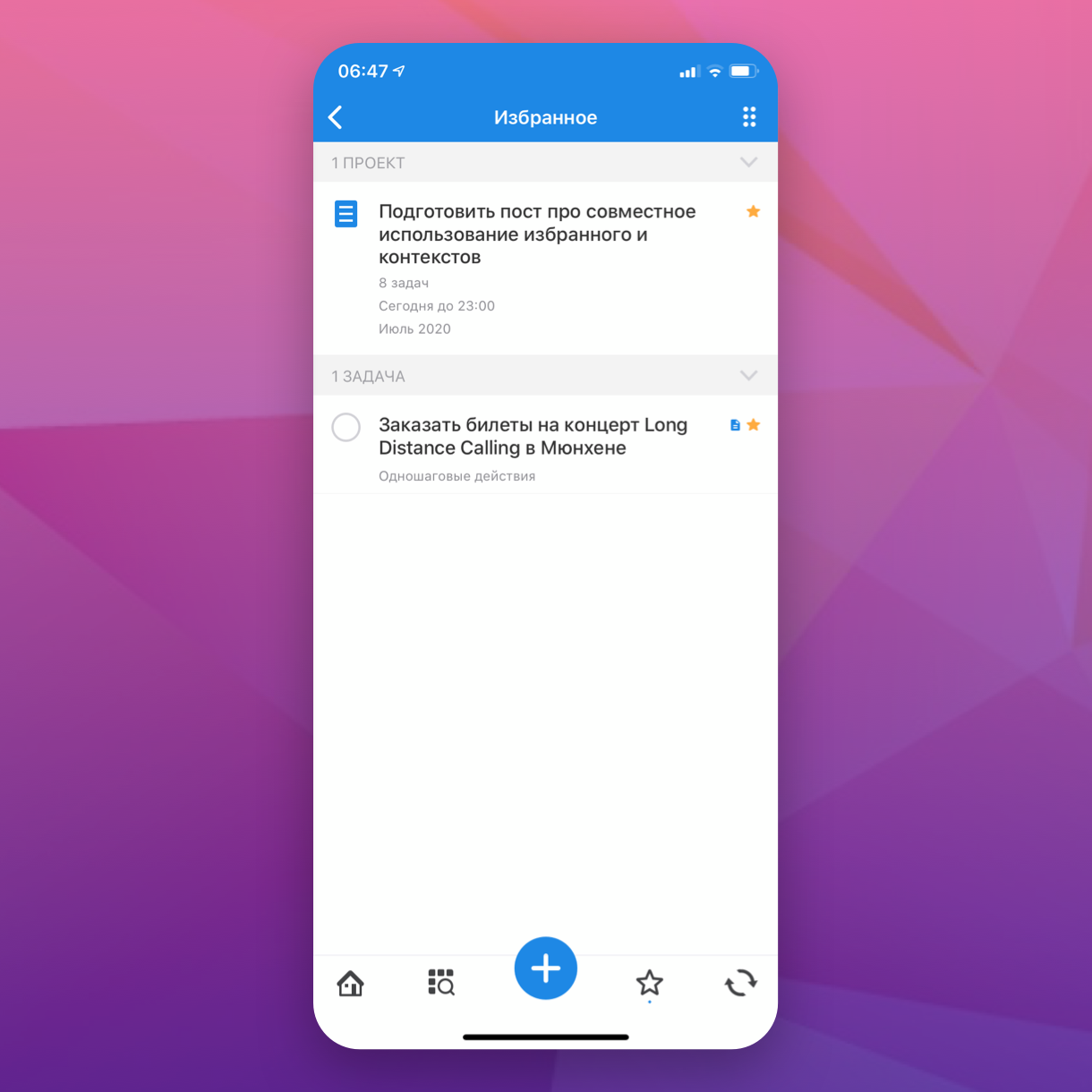Комбинирование функций Избранного и контекстов позволяет гибко настроить навигацию органайзера таким образом, чтобы меньше переключать контекст внимания, меньше тратить энергию на рутину и больше фокусироваться на комплексных задачах.
