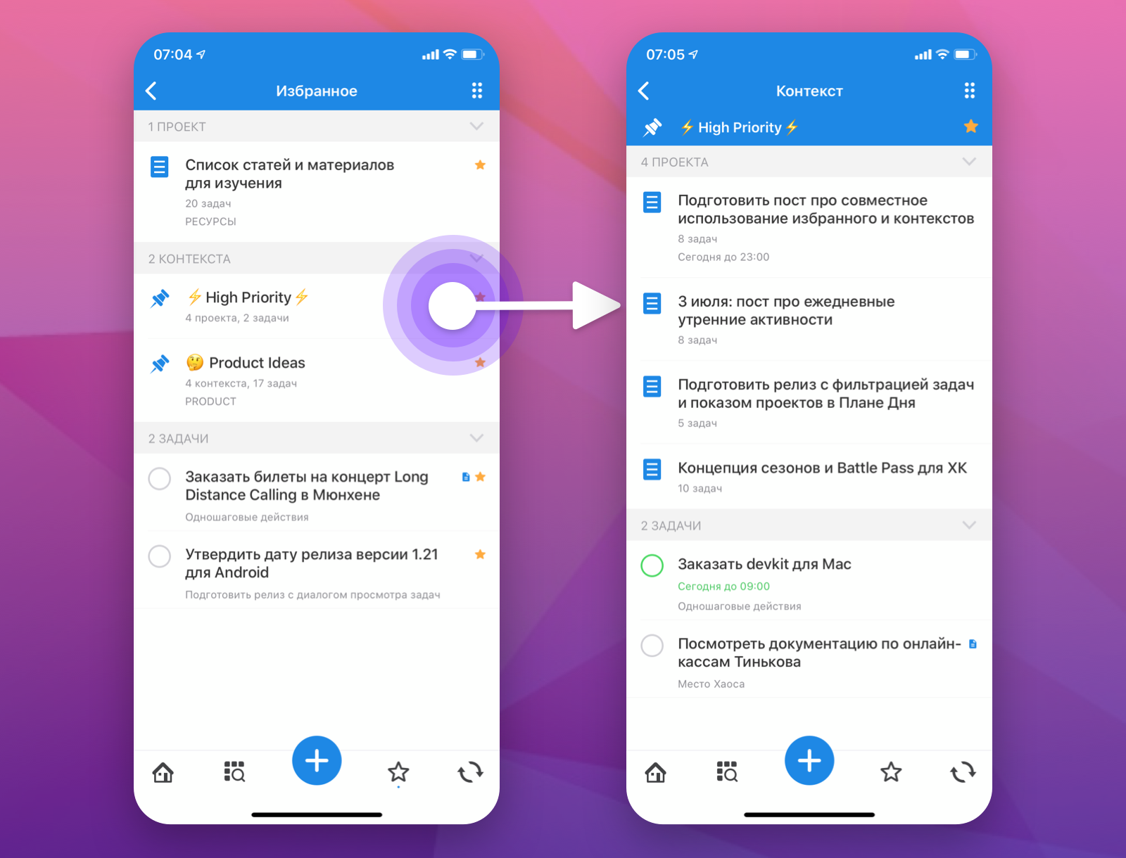 Снижаем стресс от текучки с помощью "Избранного" и "Контекстов"