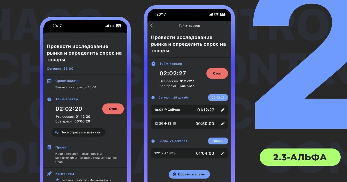 В качестве новогодней открытки хотим показать вам экраны тайм-трекера, который появится в Хаос-контроле после праздников: