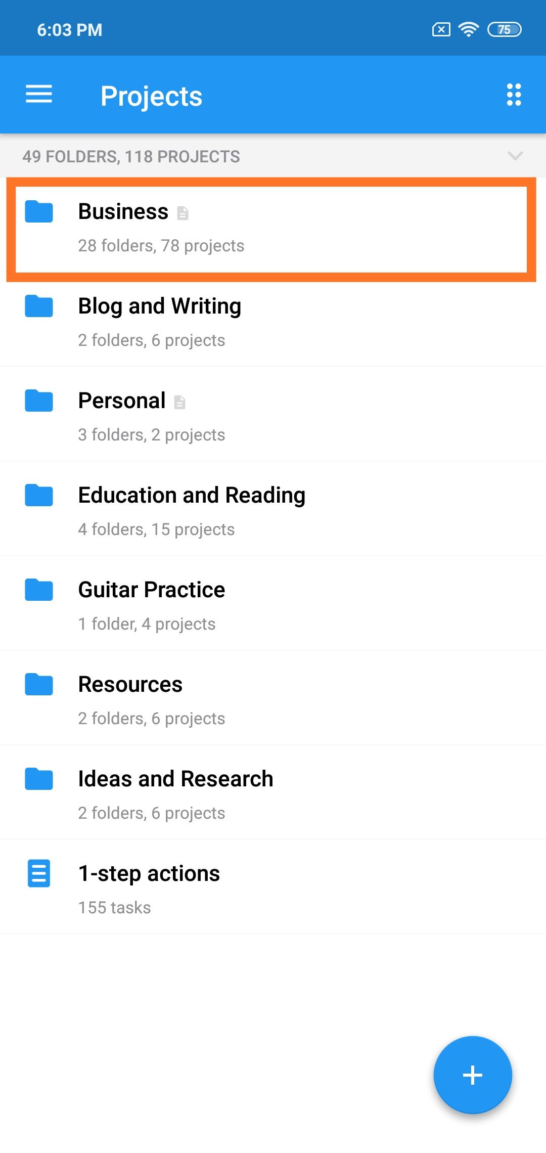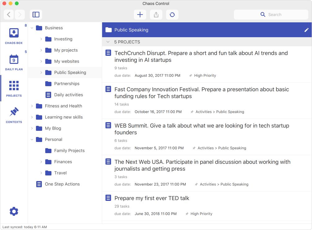 We use Folders in Chaos Control to break down larger goals and to organize projects by category. It works similarly to folders in a file manager: