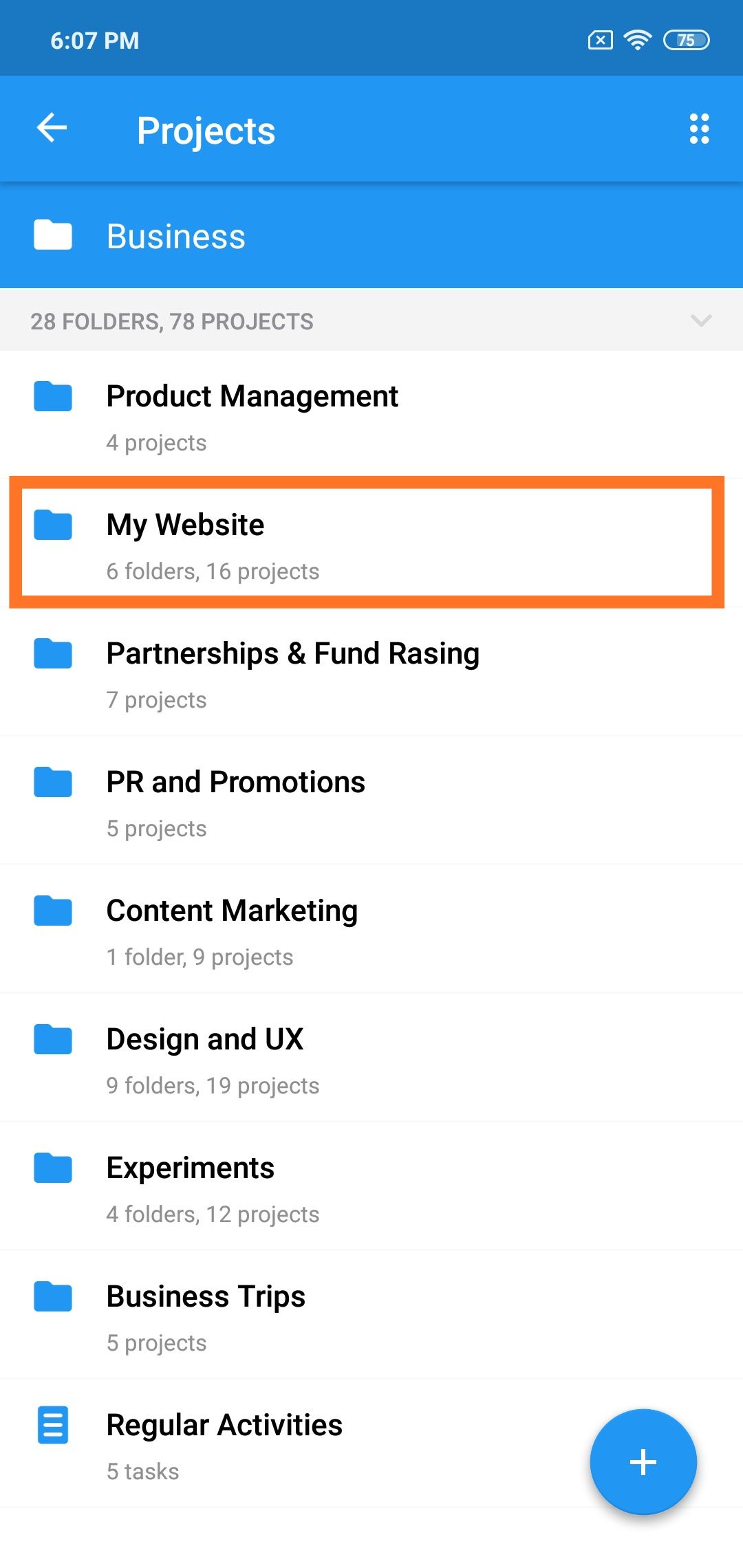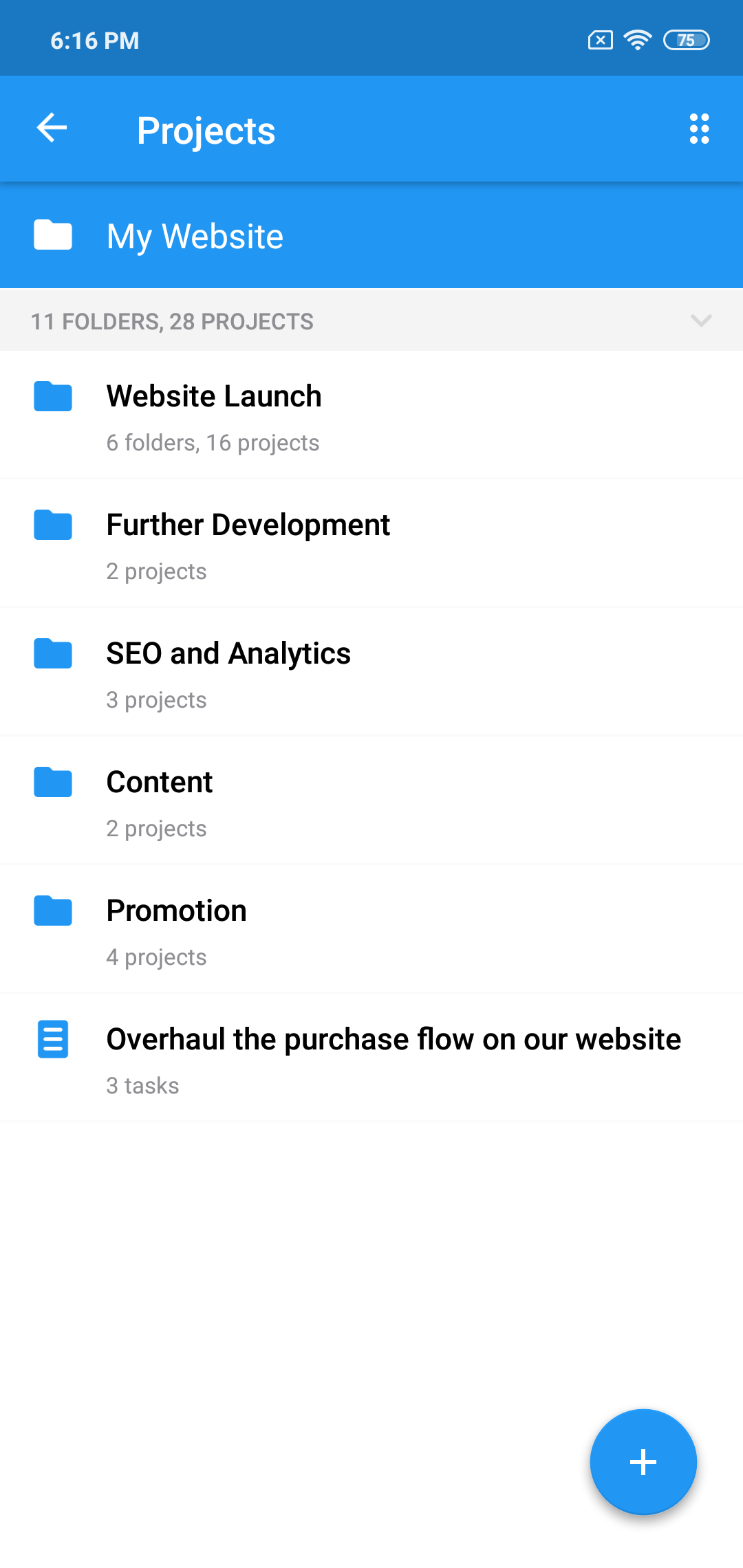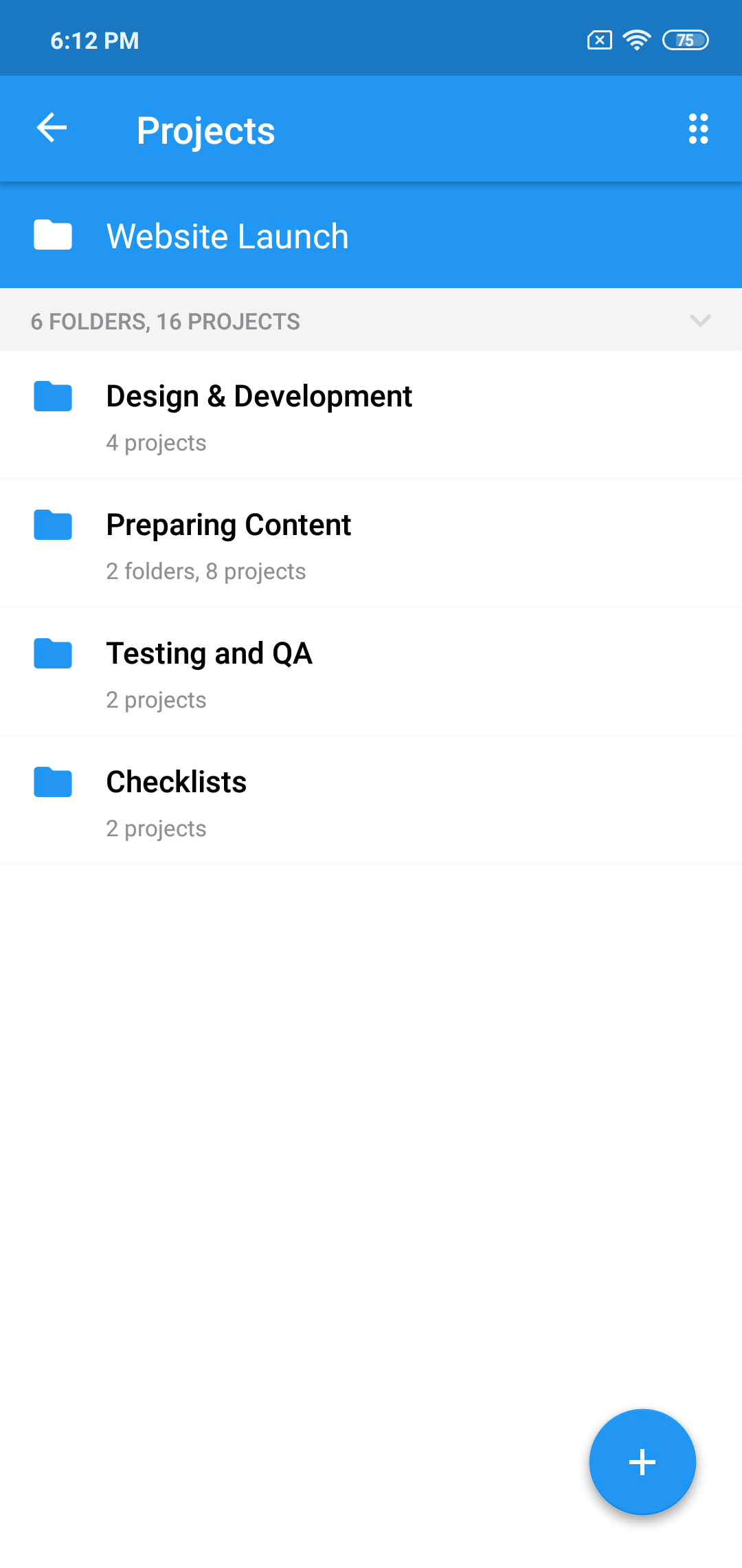 For example, it makes sense to combine checklist projects into the appropriate folder, and projects related to the inspection of mock-ups in their own. In the end, the contents of the "Website launch" folder may look like this:
