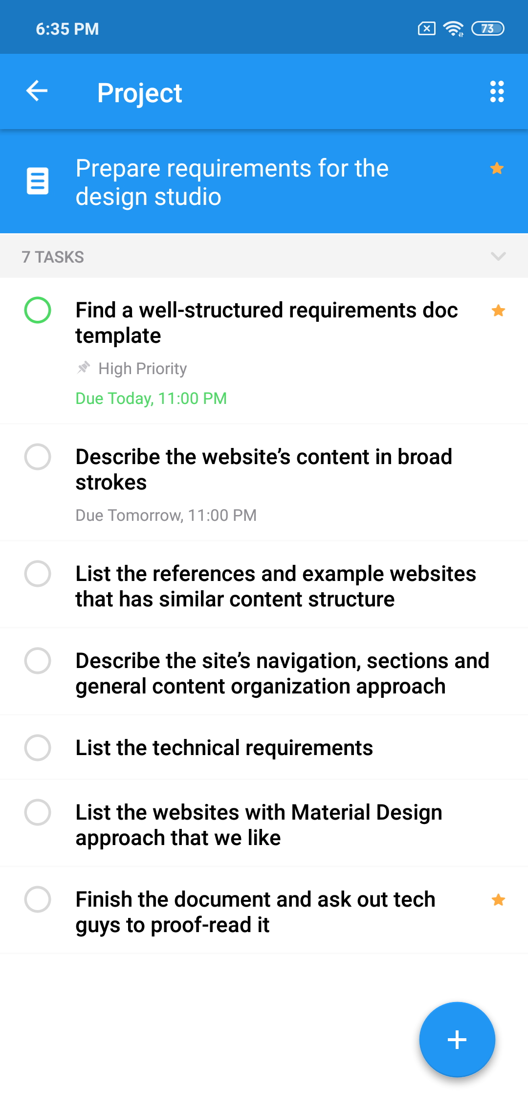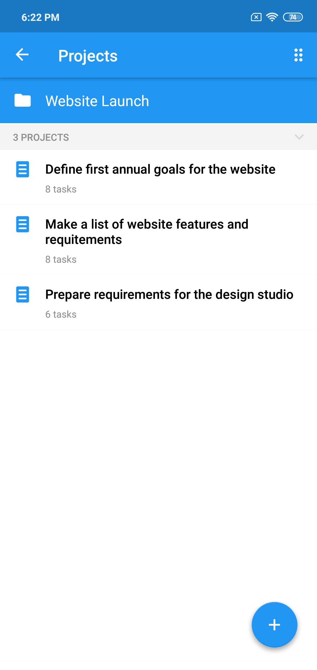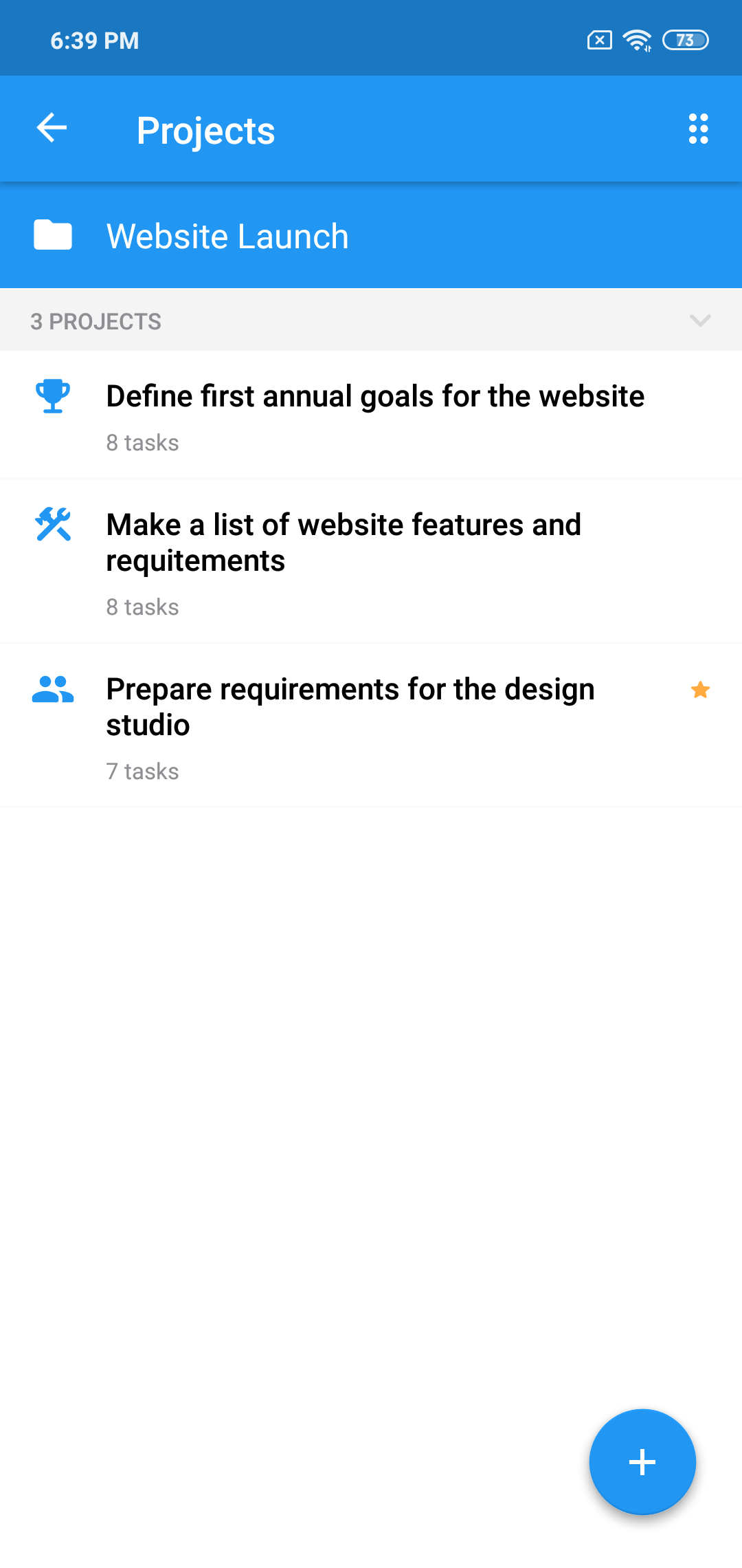 As soon as we create these projects, it becomes much easier to formulate a set of requirements to be used by developers and designers. Therefore, it makes sense to add a project called "Prepare a requirements doc for the design studio" in the same folder: