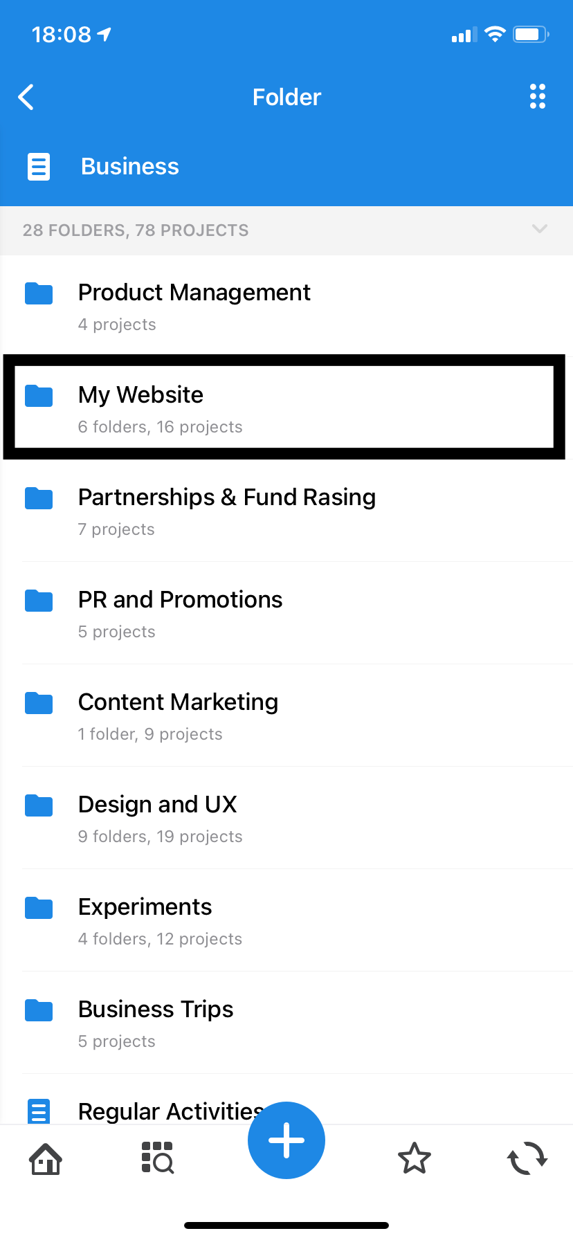 So we have already decided that the place for the tasks devoted to the website is in the Business folder. It’s logical to create a subfolder called "My website" under “Business” with subfolders like "Website launch" and "Further development."