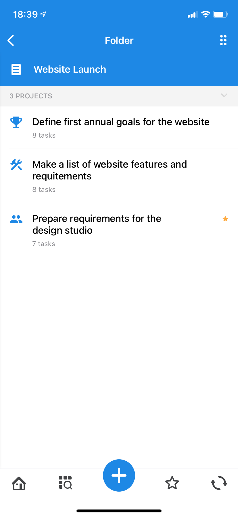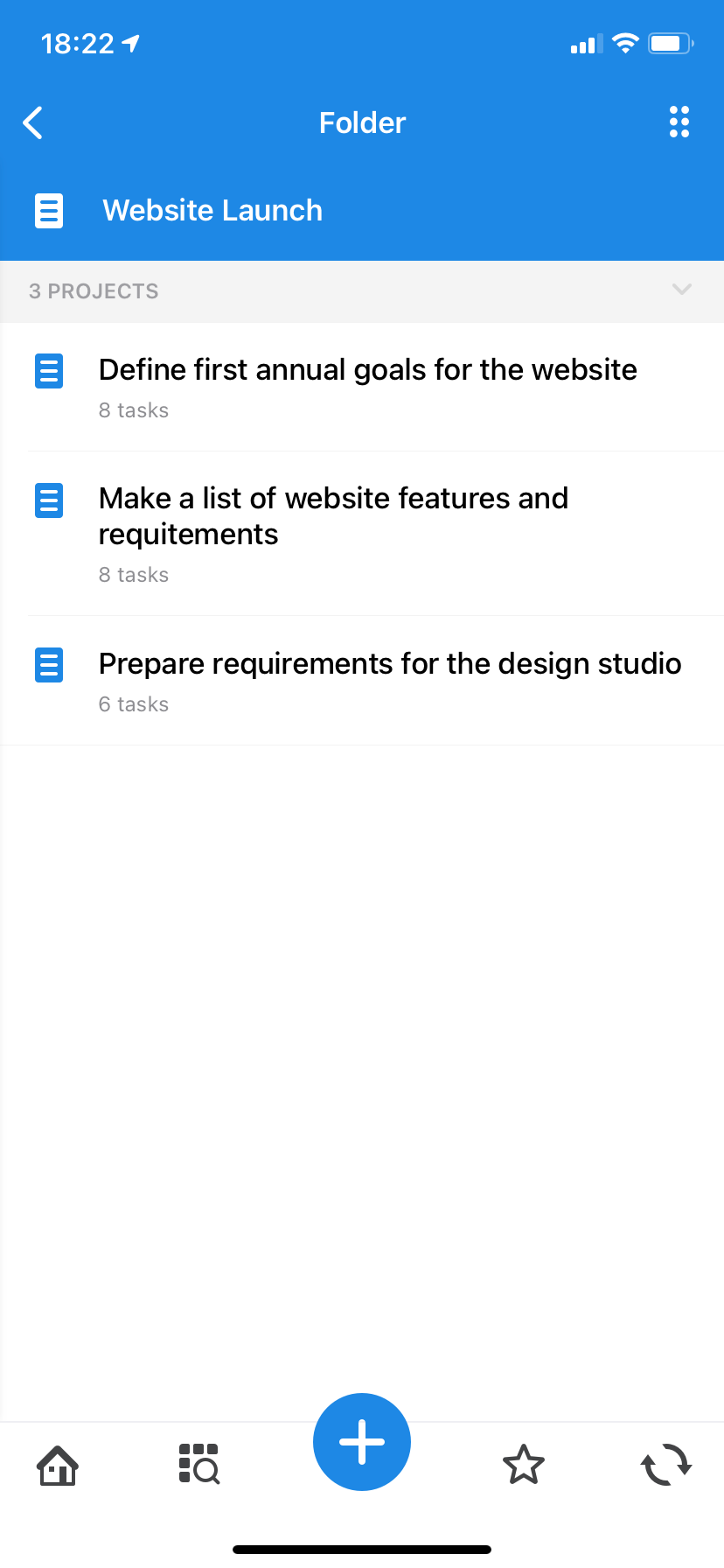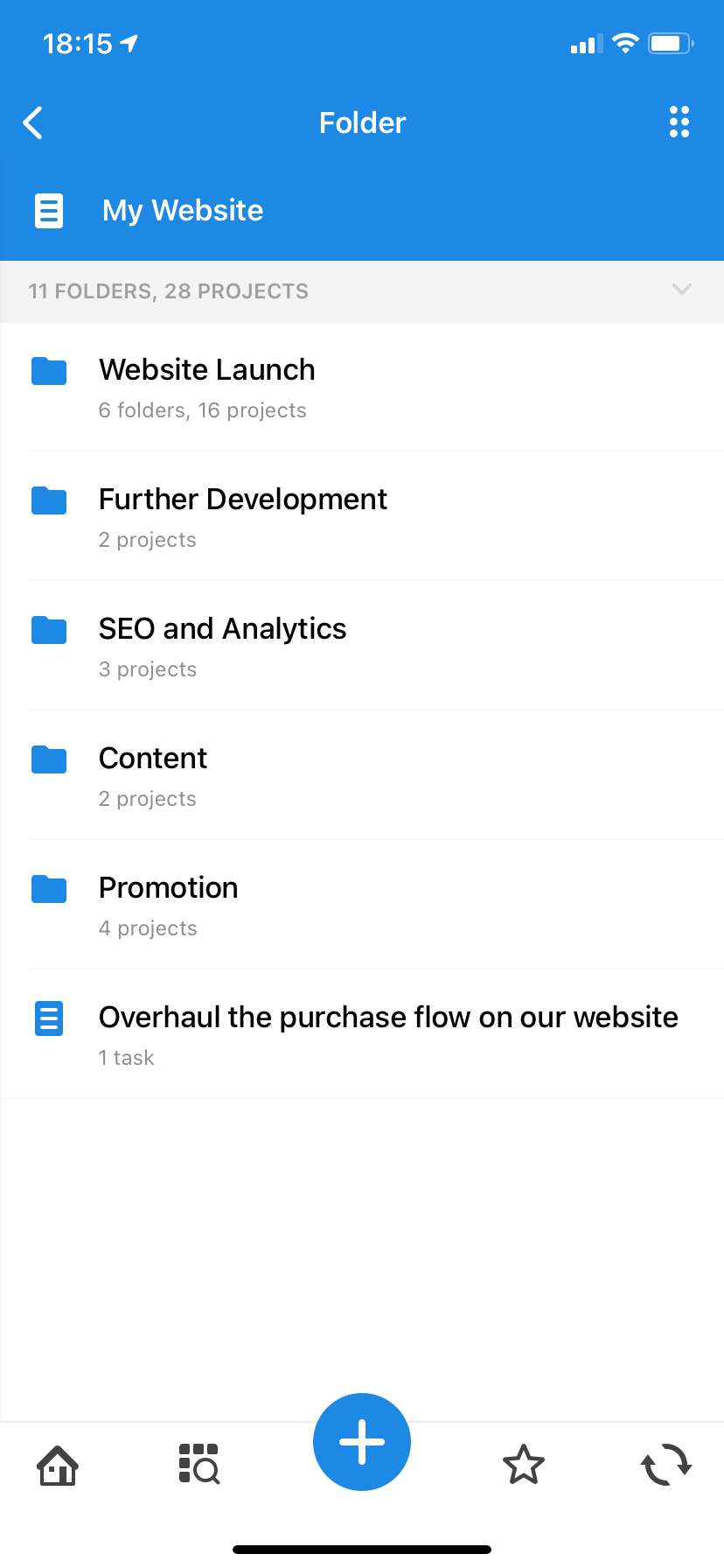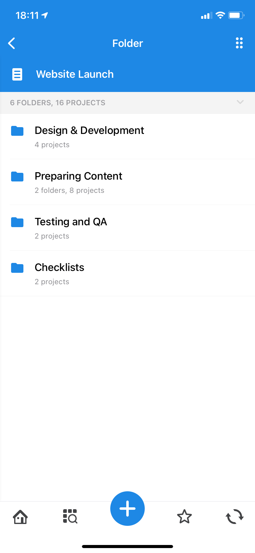 For example, it makes sense to combine checklist projects into the appropriate folder, and projects related to the inspection of mock-ups in their own. In the end, the contents of the "Website launch" folder may look like this:
