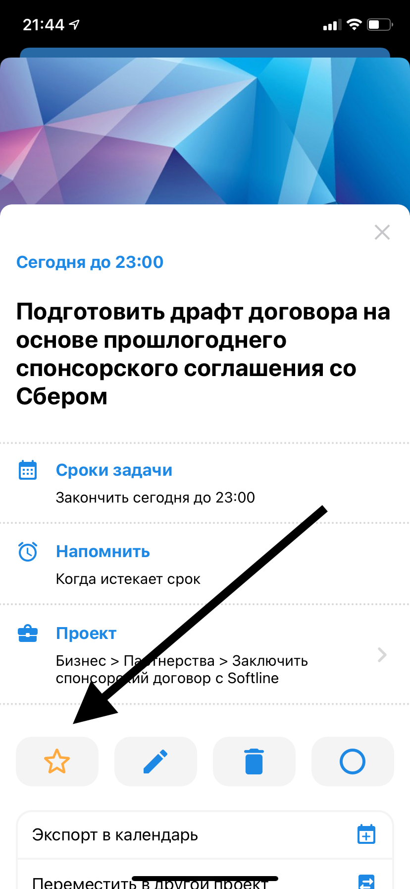 Добавить задачу, проект или контекст в избранное можно тремя способами: