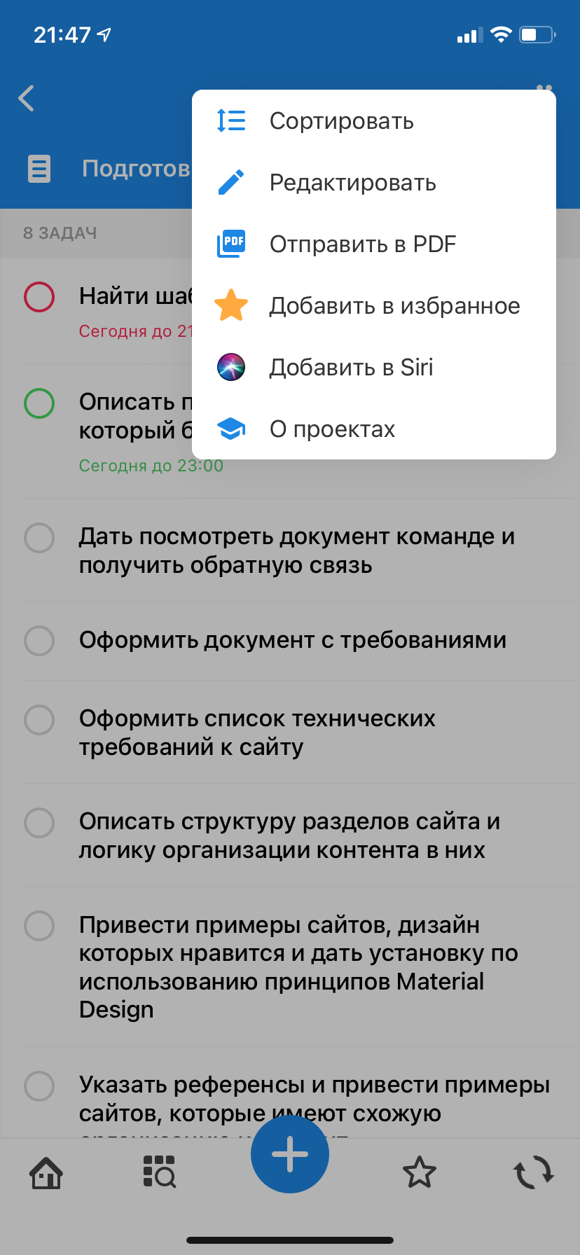 Для того, чтобы создать команду для конкретного списка задач, воспользуйтесь контекстным меню в правом верхнем углу экрана и нажмите кнопку «Добавить в Siri»: