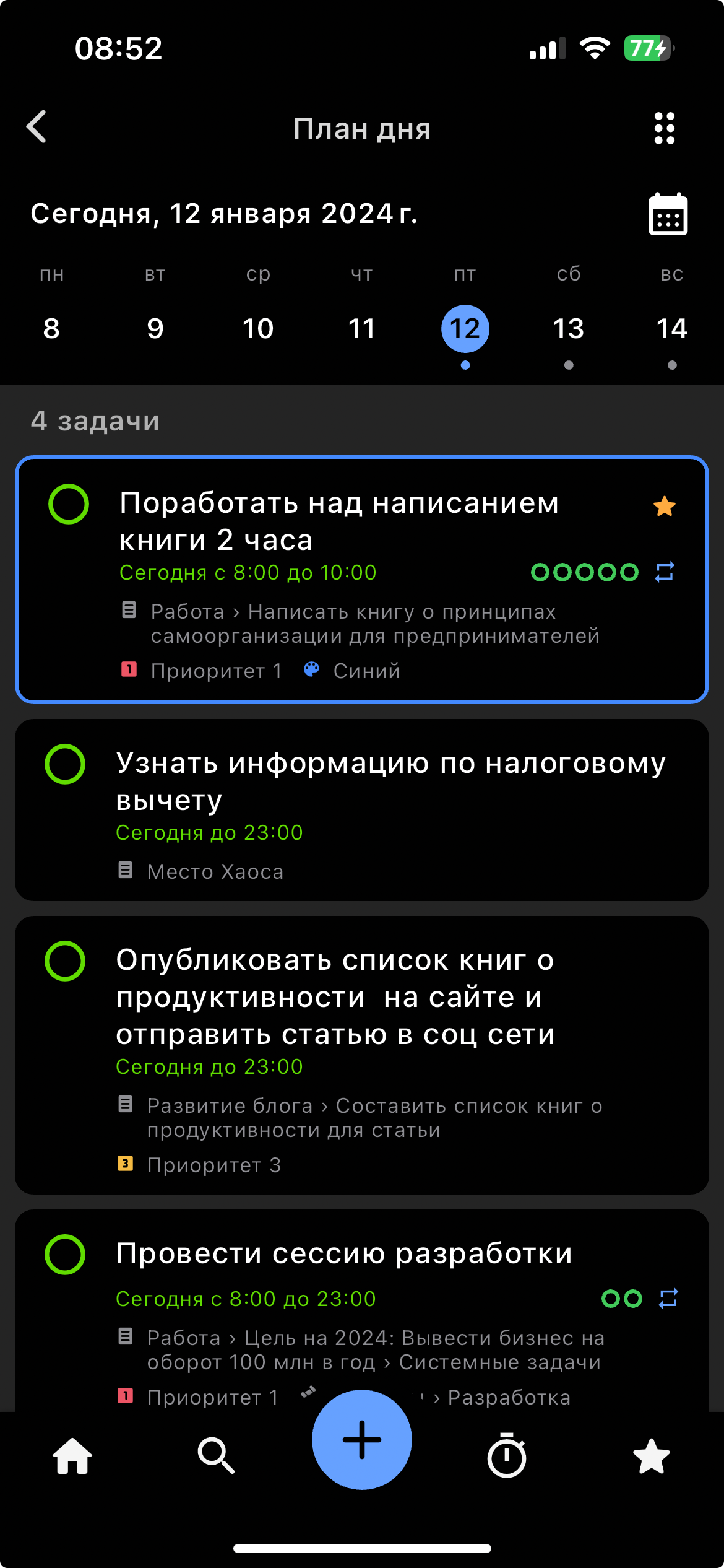 1. Создайте ежедневную задачу, посвященную работе над книгой: