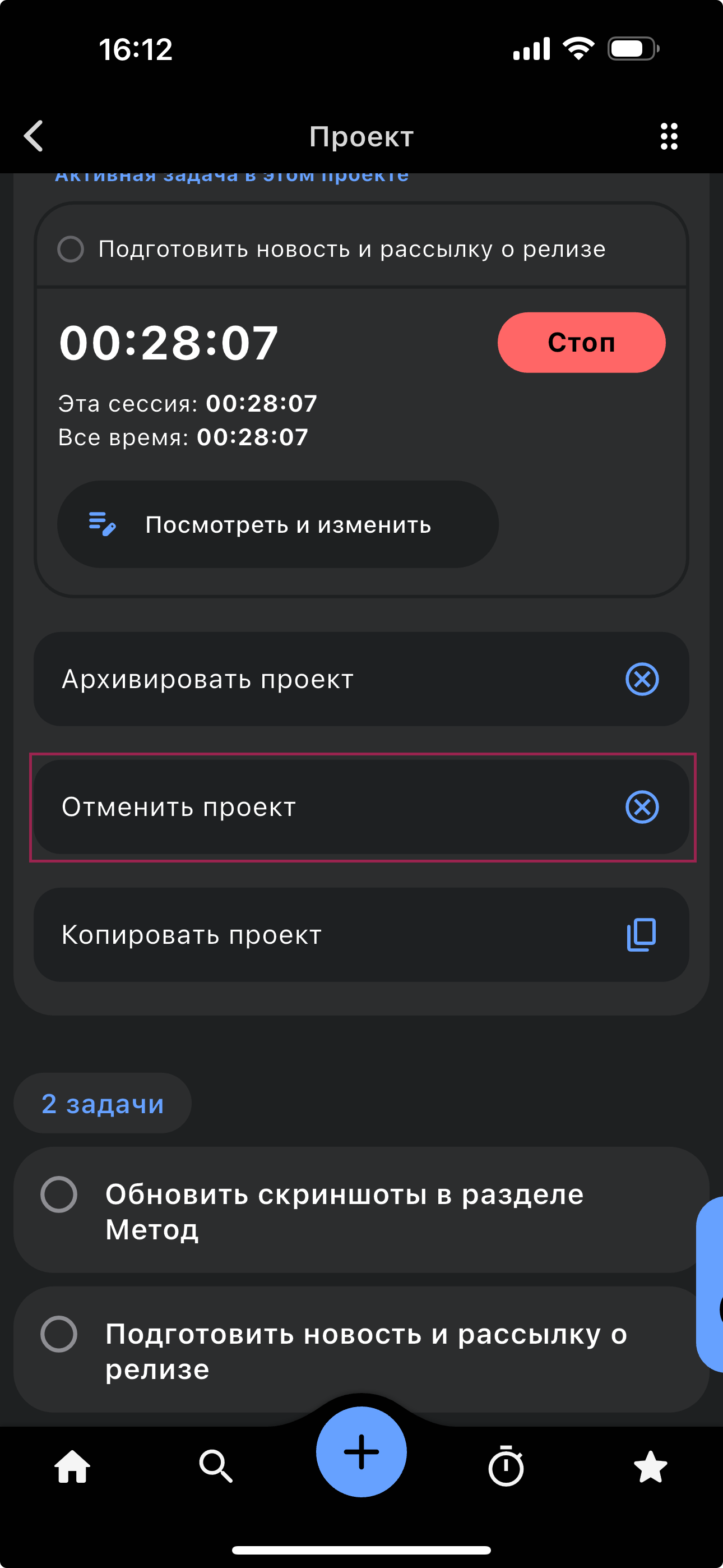 Новые функции: копирование, отмена и архивация проектов и задач.